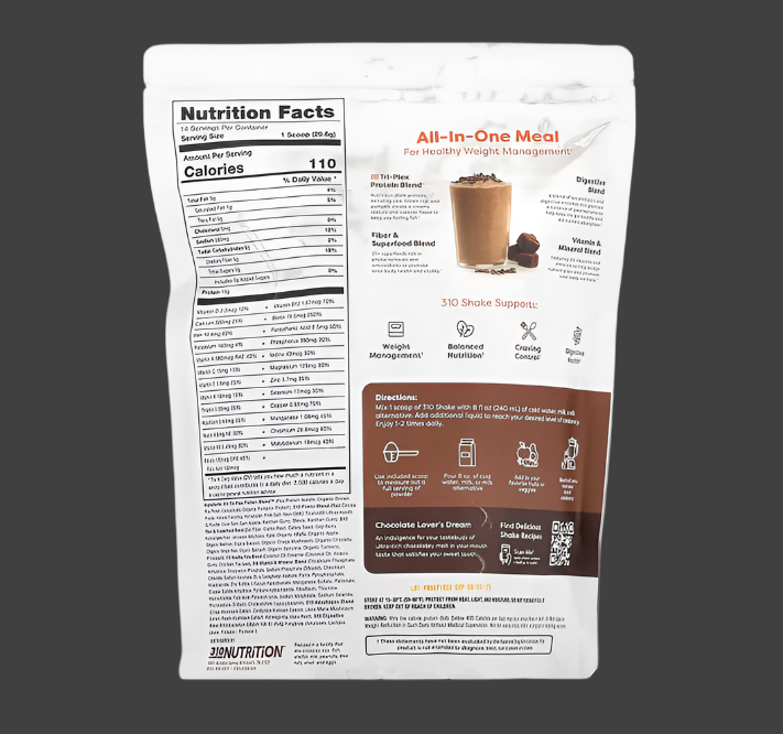 Mix 1 scoop of 310 Shake with 8 fl oz (240 ml) of cold water, milk, or milk alternative. Add additional liquid to reach your desired level of consistency. Enjoy 1-2 times daily.