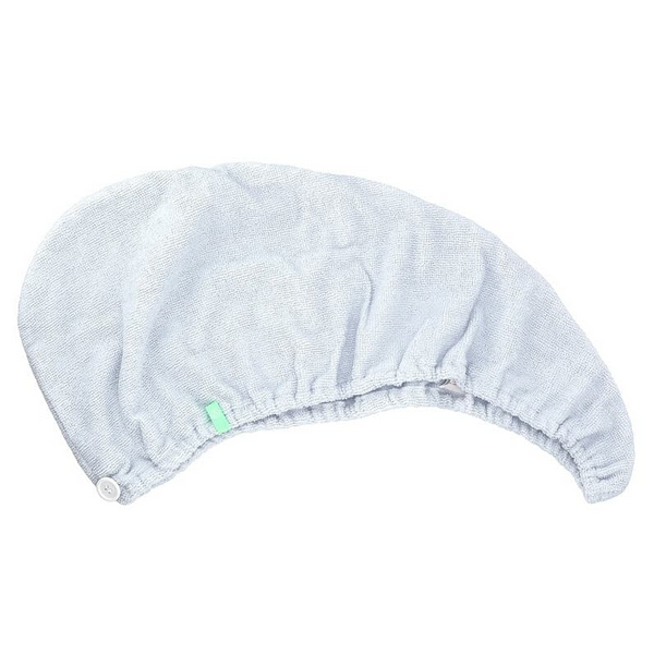 For optimal results, place the towel on wet hair with the button at the back of your head, tuck your hair into the pocket, twist and secure by placing the loop on the button. Release when your hair is dry or anytime you prefer.