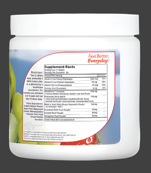 Other Ingredients: Sorbitol, natural flavors, stearic acid, magnesium stearate, microcrystalline cellulose, citric acid, silicon dioxide, sucralose.